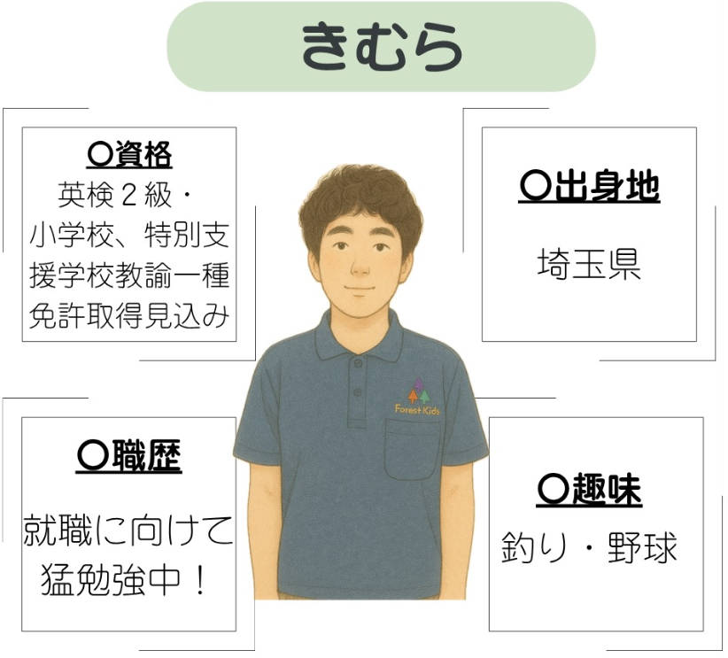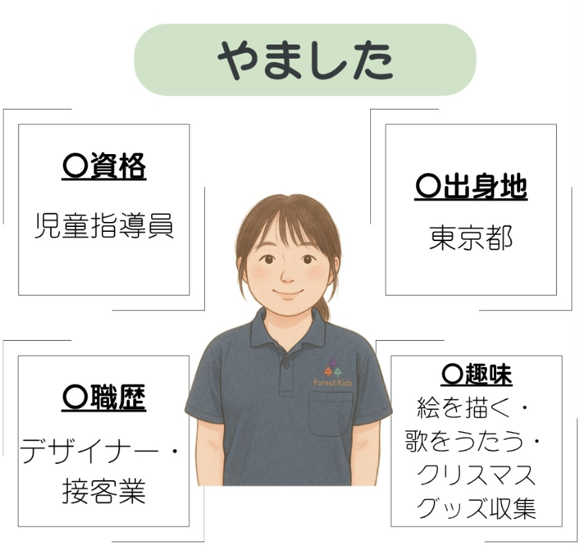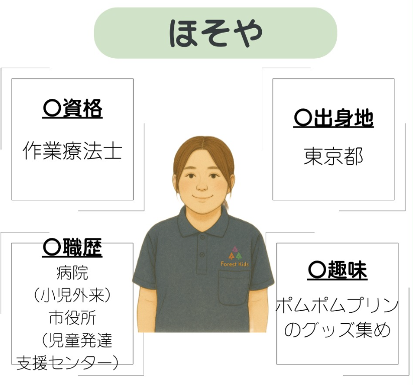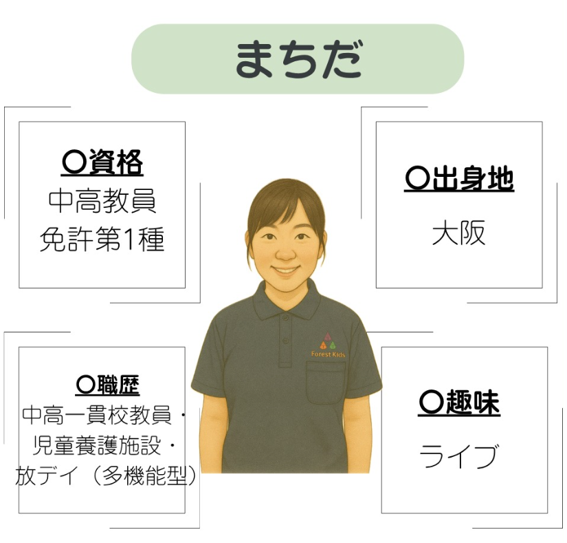 ~職員紹介~ 東浦和第二教室 2025.08.27 みなさんこんにちは(^^)/今回は東浦和第2教室で働く職員を紹介します皆さまに私たちの雰囲気が少しでも伝われば嬉しく思います!今後も子どもたちの「できた!」「楽しい!」の気持ちを大切に、安心して過ごせる居場所づくりに努めてまいります。これからもどうぞフォレストキッズさとむら東浦和第2教室をよろしくお願いいたします<(_ _)>