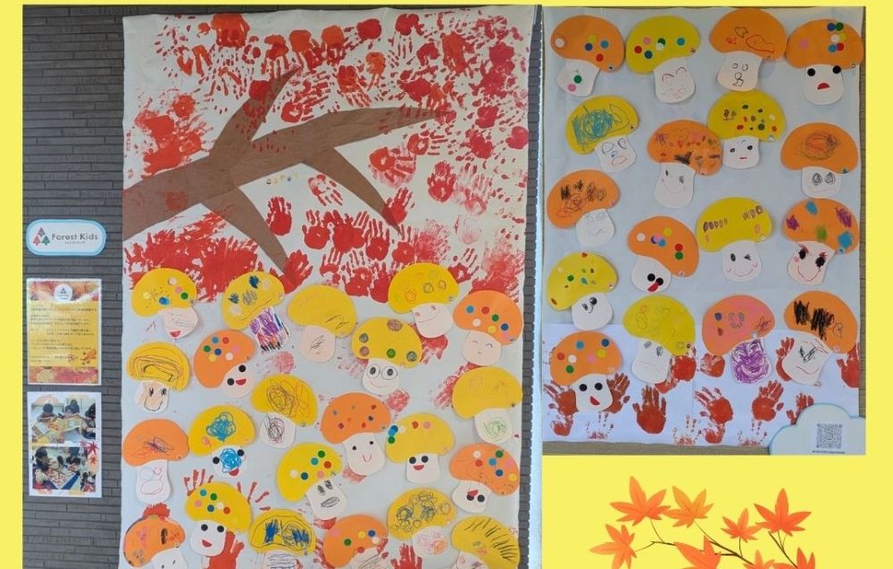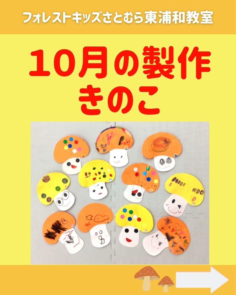 10月の製作「きのこ」 東浦和教室 2025.11.22 こんにちは。フォレストキッズさとむら東浦和教室です。 今回は10月の製作「きのこ」の作品を紹介します。 ①クレヨンできのこの模様や顔を描く ②きのこの傘と軸をのりで貼り合わせる クレヨンの太さを変える、 クレヨンではなくシールを貼るなど 1人ひとりの発達段階に合わせて取り組んでいます。 今回の製作は11月9日に開催したさとクリマルシェに展示しました。 こどもたちの個性溢れるきのこが秋のマルシェを彩りました。