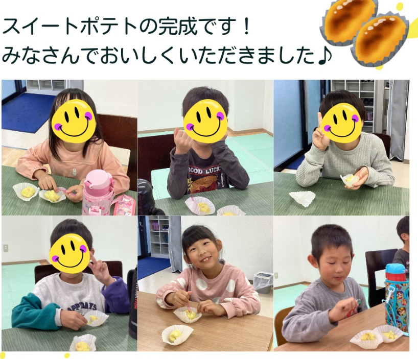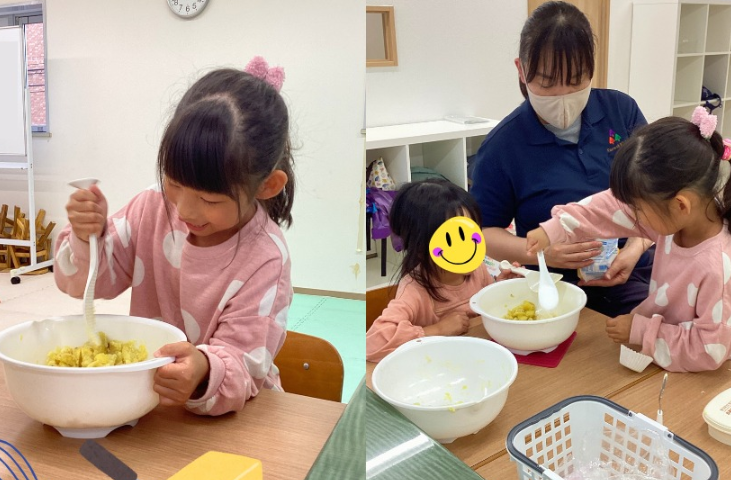 教室に戻ってからは、さつまいもを使ってスイートポテト作りにチャレンジしました♪