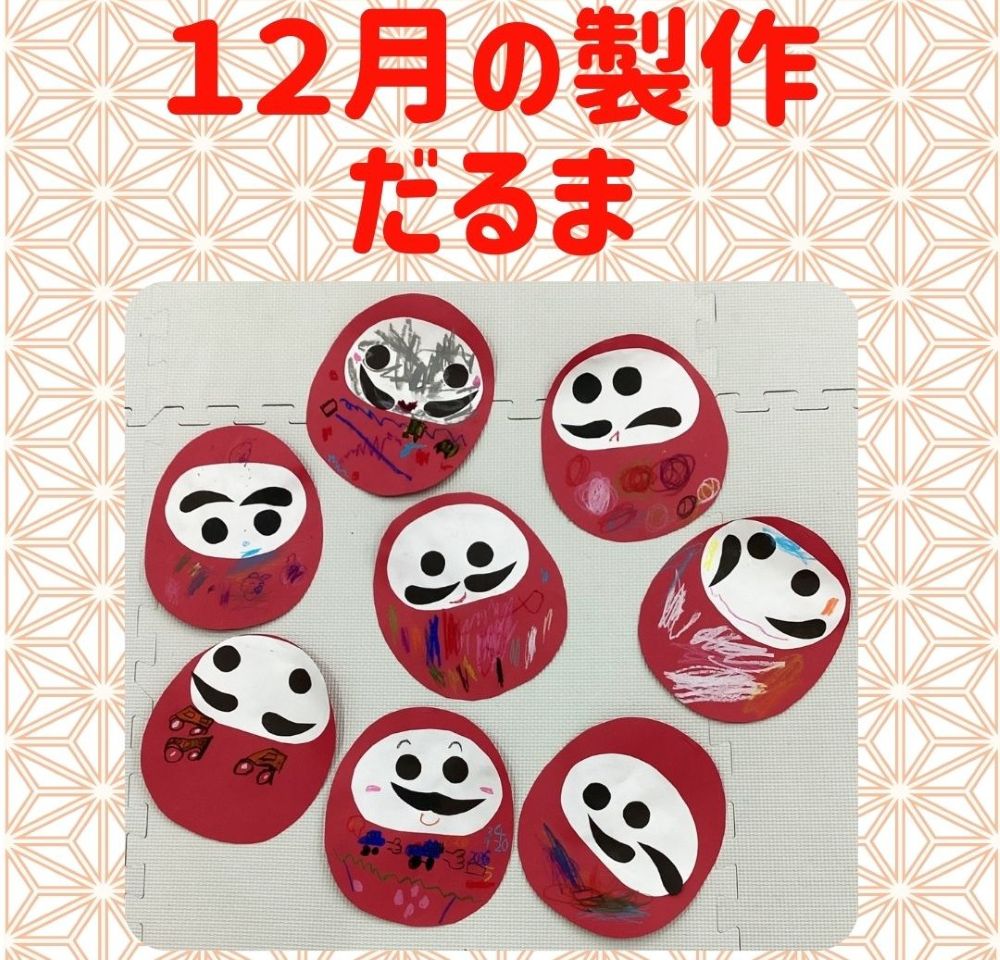 12月の製作「だるま」 東浦和教室 2026.02.20 こんにちは。フォレストキッズさとむら東浦和教室です。 12月の製作はだるまを作りました。 作り方 ①赤い丸の画用紙にのりで顔(白)・目・ひげを貼る ②口やからだの模様など、自由にお絵描きをする 目とひげの貼り方で一人一人違った表情のだるまになりました!